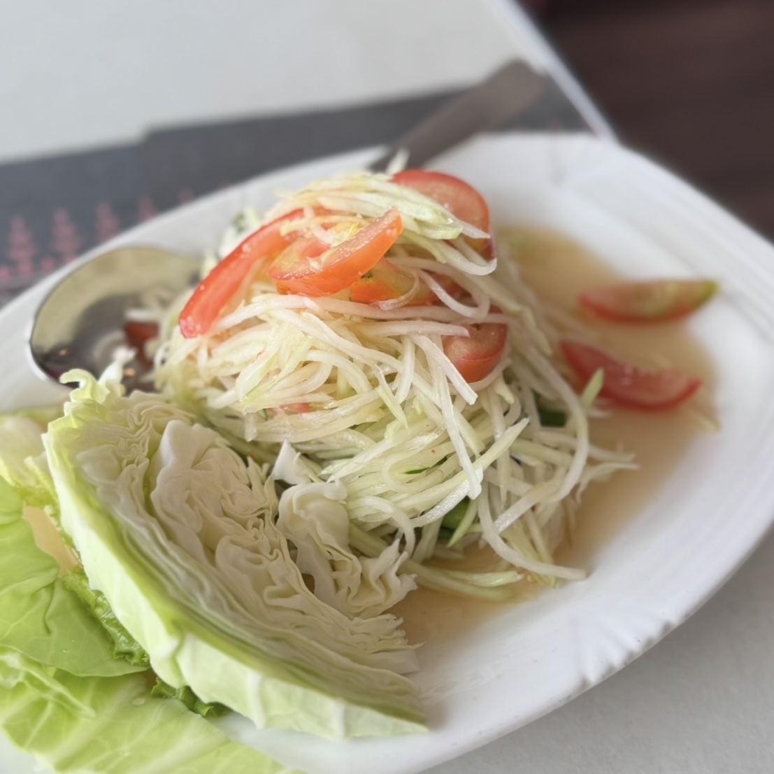 On my first visit, I chatted briefly with the staff while waiting for my order, and they explained how Issan food relies heavily on grilling, pounding, and fermenting. Dishes like som tam aren’t just tossed together; they’re built in a mortar, layer by layer, to balance lime juice, fish sauce, chilies, and palm sugar. That method matters. According to research shared by Thailand’s Ministry of Culture, northeastern Thai cooking uses fewer coconut-based sauces and more herbs and fermented ingredients, which is why the flavors hit sharper and feel lighter at the same time. You can taste that philosophy clearly in the menu here.
